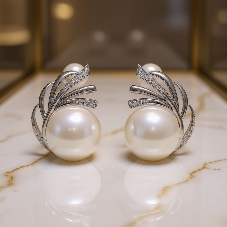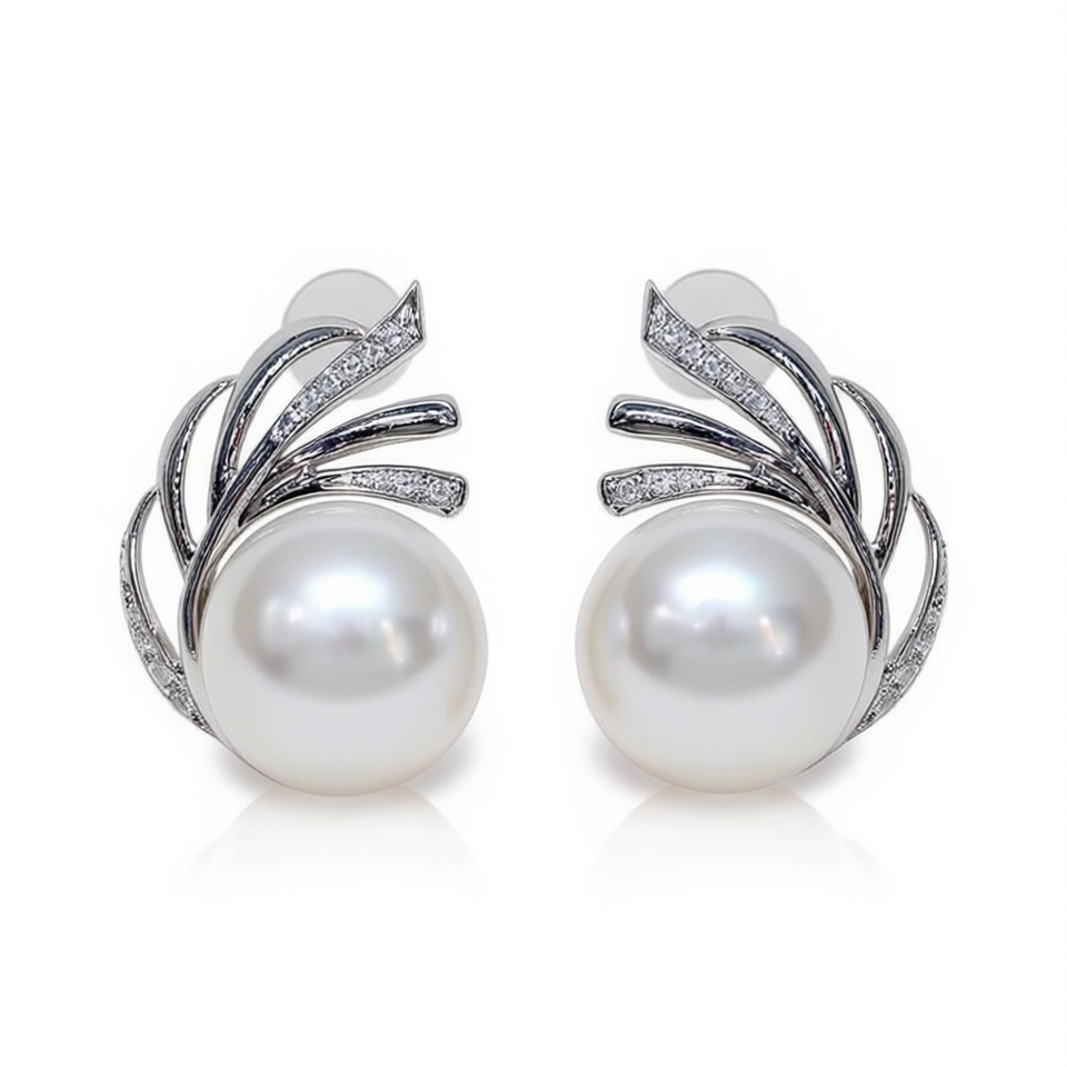 E4061 White Gold Akoya Pearl Stud Earrings AAA Round Cultured Pearl Women's Luxury Wedding Jewelry 18K Gold Channel Setting