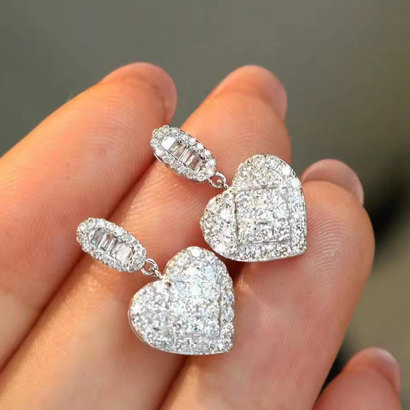 E4088 Heart Drop Earrings White Gold 925 Silver Crystal Micro Insert Women Wedding Jewelry