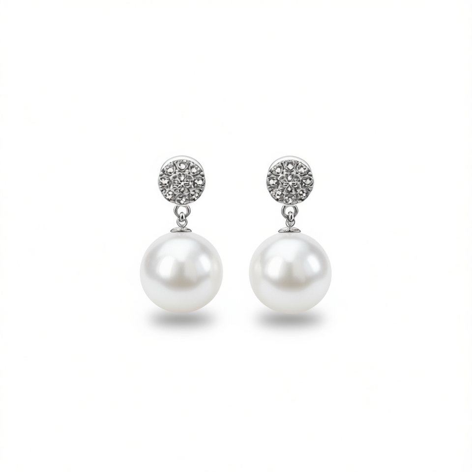 E4097 White Akoya Pearl Drop Earrings 925 Silver Pav Setting Round AAA Cultured Pearl Women's Classic Wedding Jewelry