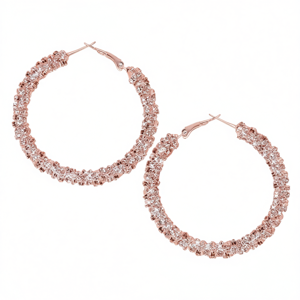 Orecchini a Cerchio E4161 in Oro Rosa con Cristalli e Strass, Gioielli di Lusso da Donna per Feste