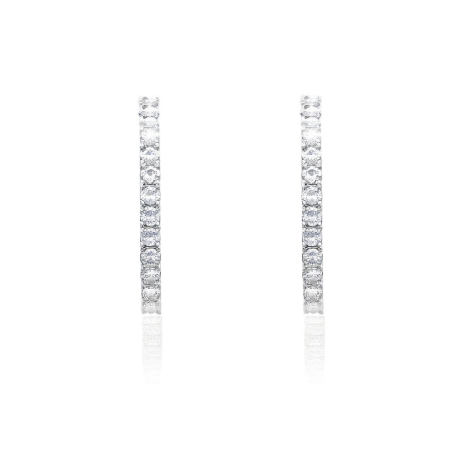 E4184 White Gold Hoop Earrings Crystal Rhinestone Channel Setting Women's Classic Wedding Jewelry