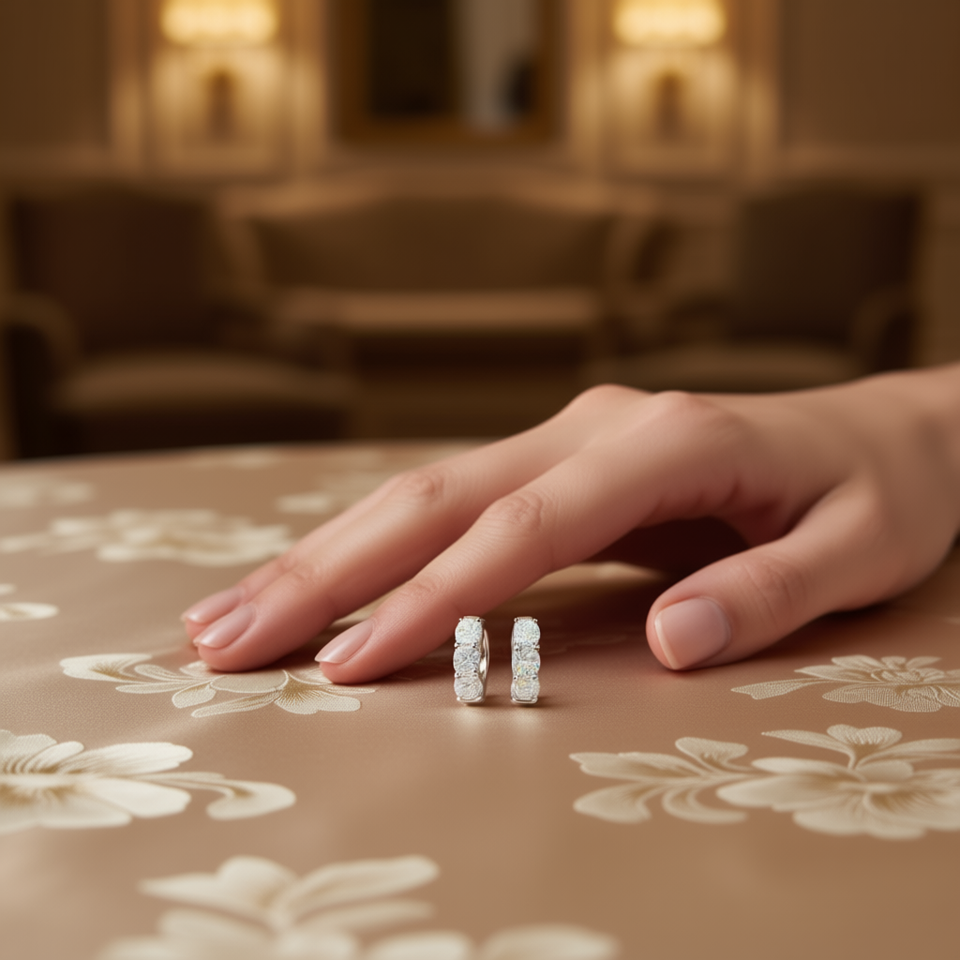 Orecchini E4199 in Oro Bianco con Diamanti Taglio Brillante Rotondo Colore D Naturali Classici da Donna per Uso Quotidiano