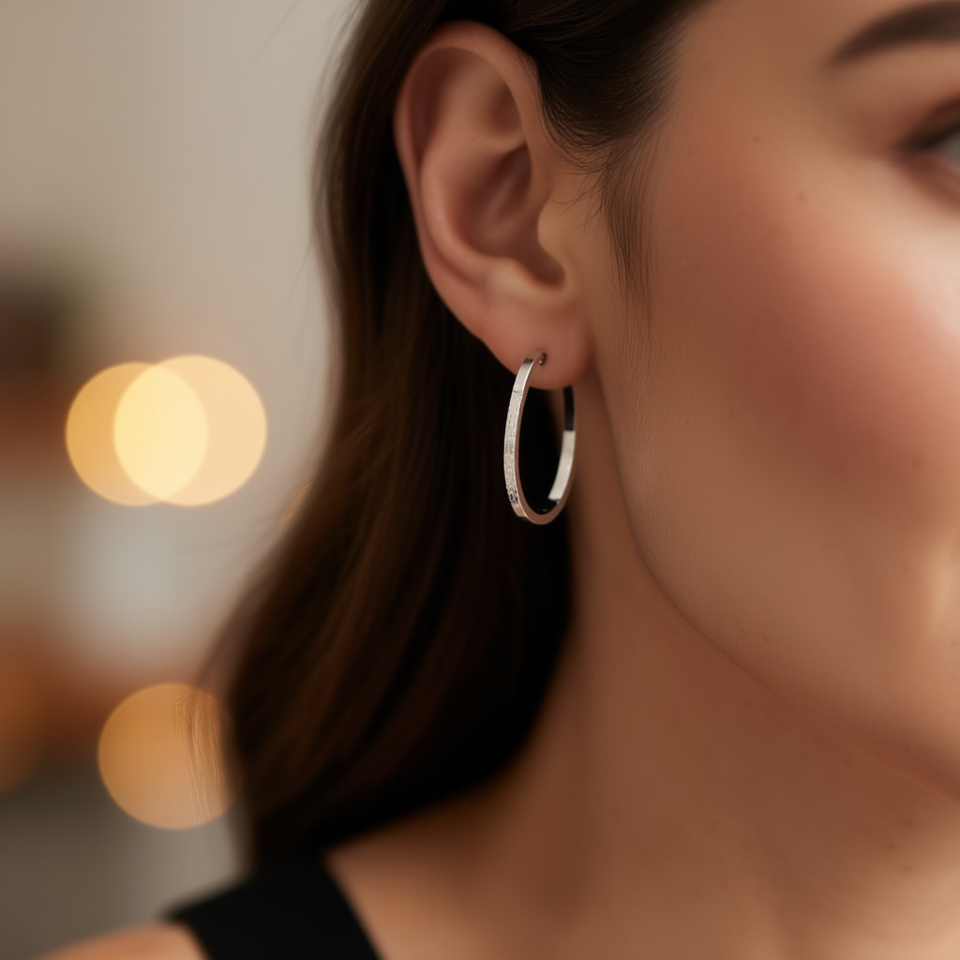 E4263 White Gold Hoop Earrings 14K Polished Finish Fashion Jewelry