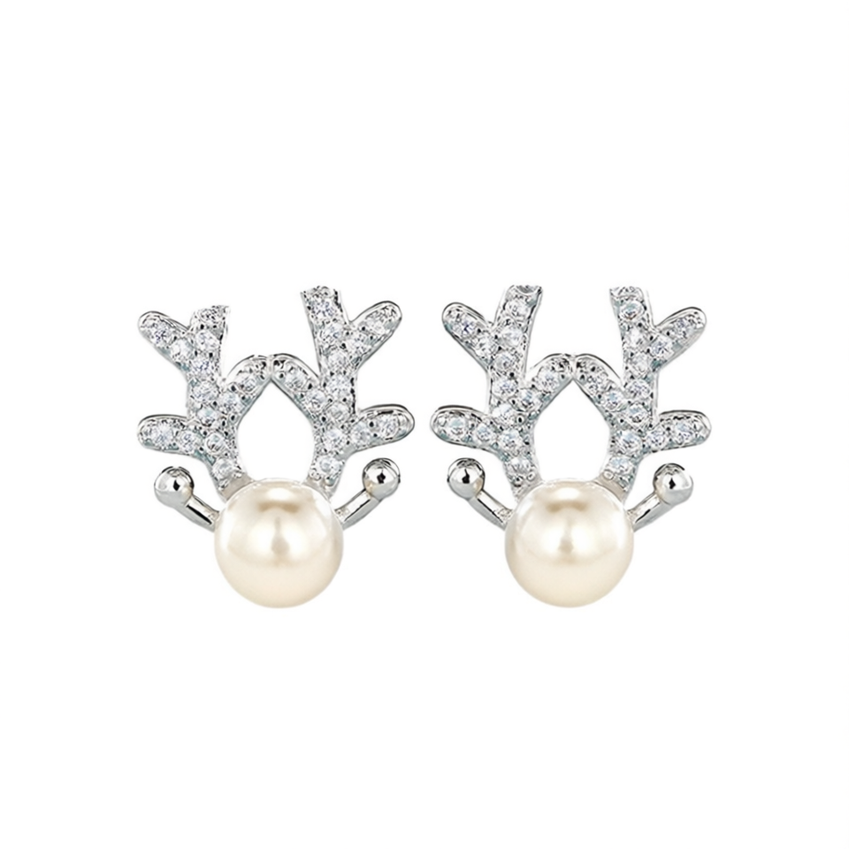 E4313 White Gold Stud Earrings Animal Shape Crystal Rhinestone Pearl Women's Cute Everyday Wear