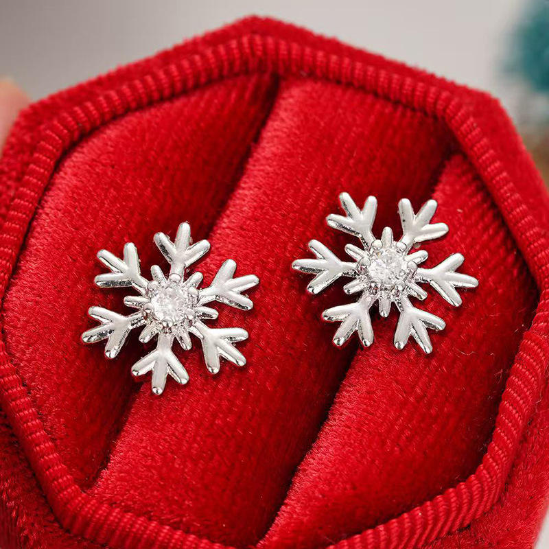 E4324 Snowflake Stud Earrings White Gold Plated Alloy Zircon Round Brilliant Cut Claw Setting Women's Classic Fashion Jewelry