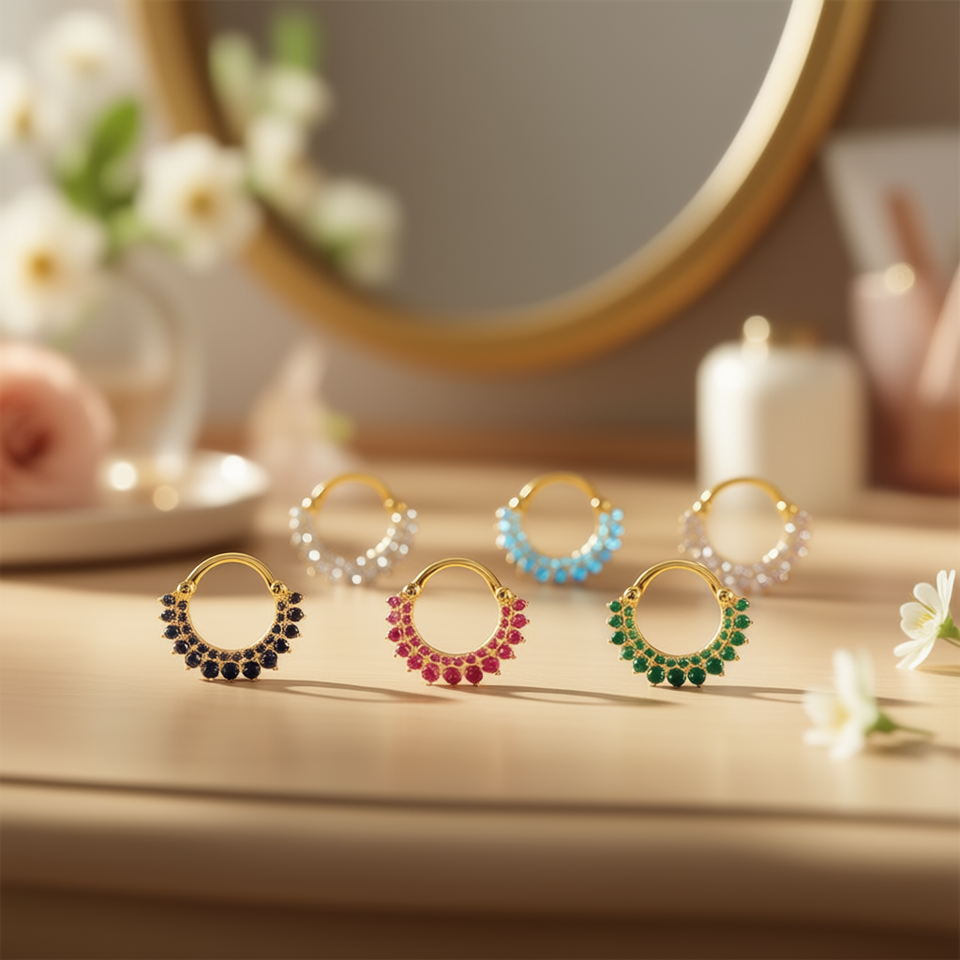 E4368 Gold Plated Lip Ring 12mm Pink Cubic Zirconia Prong Setting Trendy Body Jewelry For Daily Wear And Party