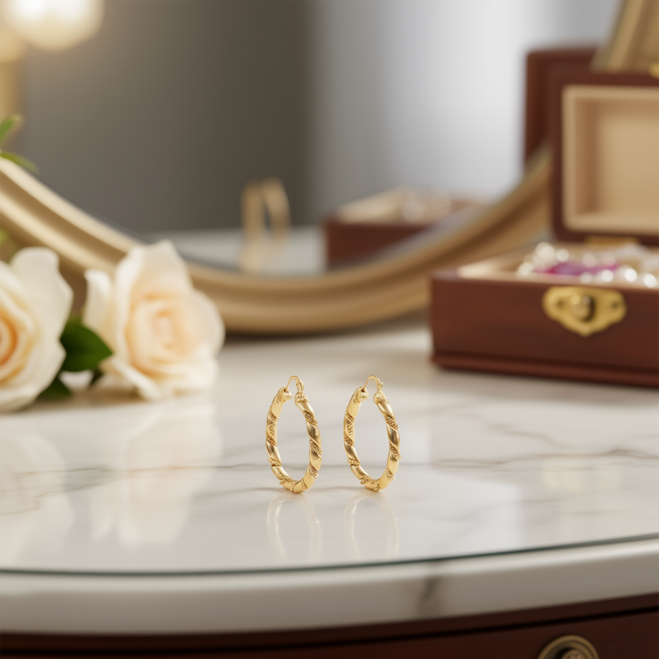 E4414 Gold Hoop Earrings Classic Twisted Design Unisex Everyday Wear Fine Jewelry