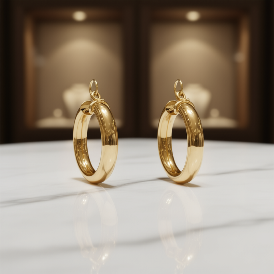 E4434 Gold Hoop Earrings Classic Style Everyday Wear Unisex Fine Jewelry