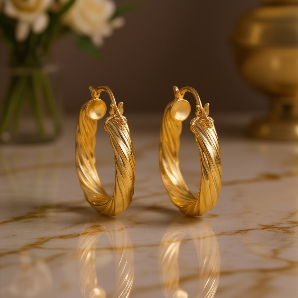 Orecchini a Cerchio in Oro E4447, Design Classico Intrecciato, Gioielli Raffinati Unisex