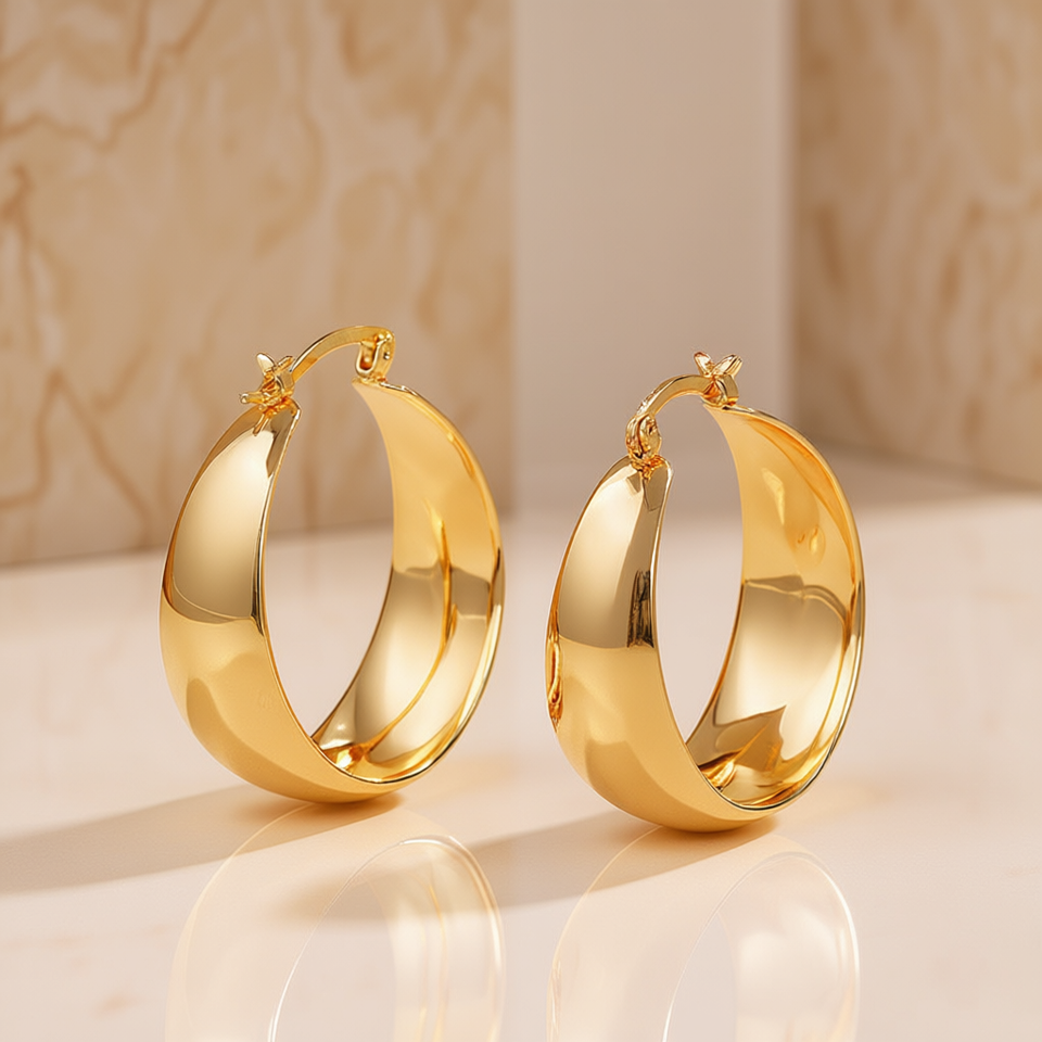E4476 Gold Hoop Earrings For Women Classic Everyday Wear Gold Plated Fine Jewelry