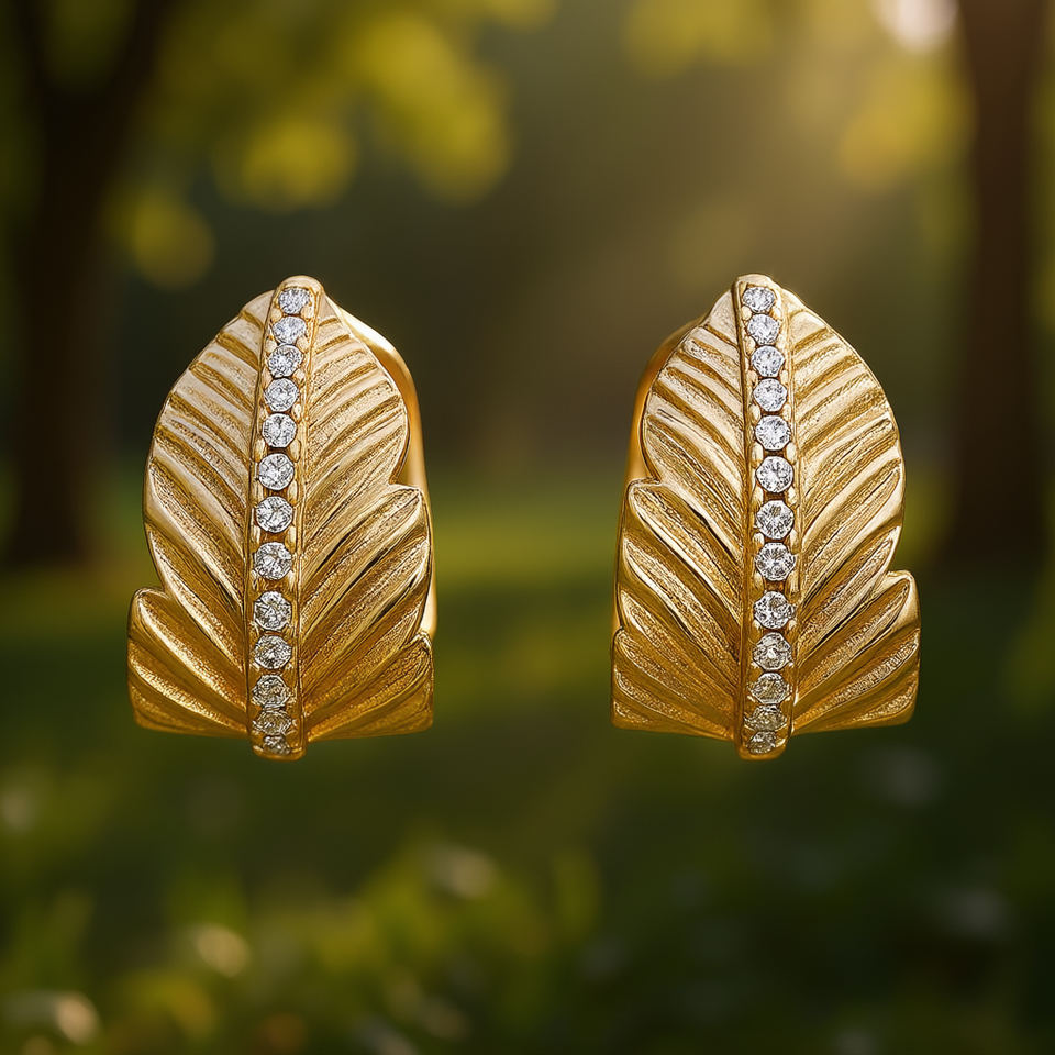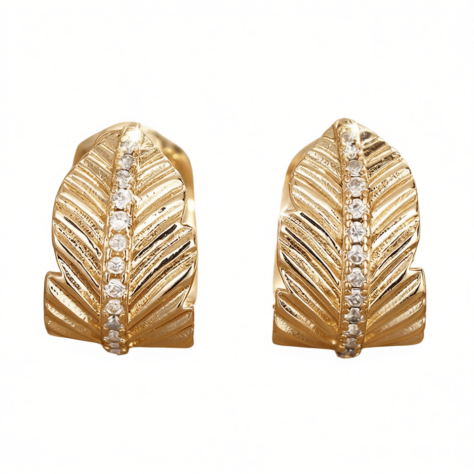 E4482 Orecchini a bottone con piuma dorata e montatura a canale con cristalli rotondi per donna, gioielli classici alla moda