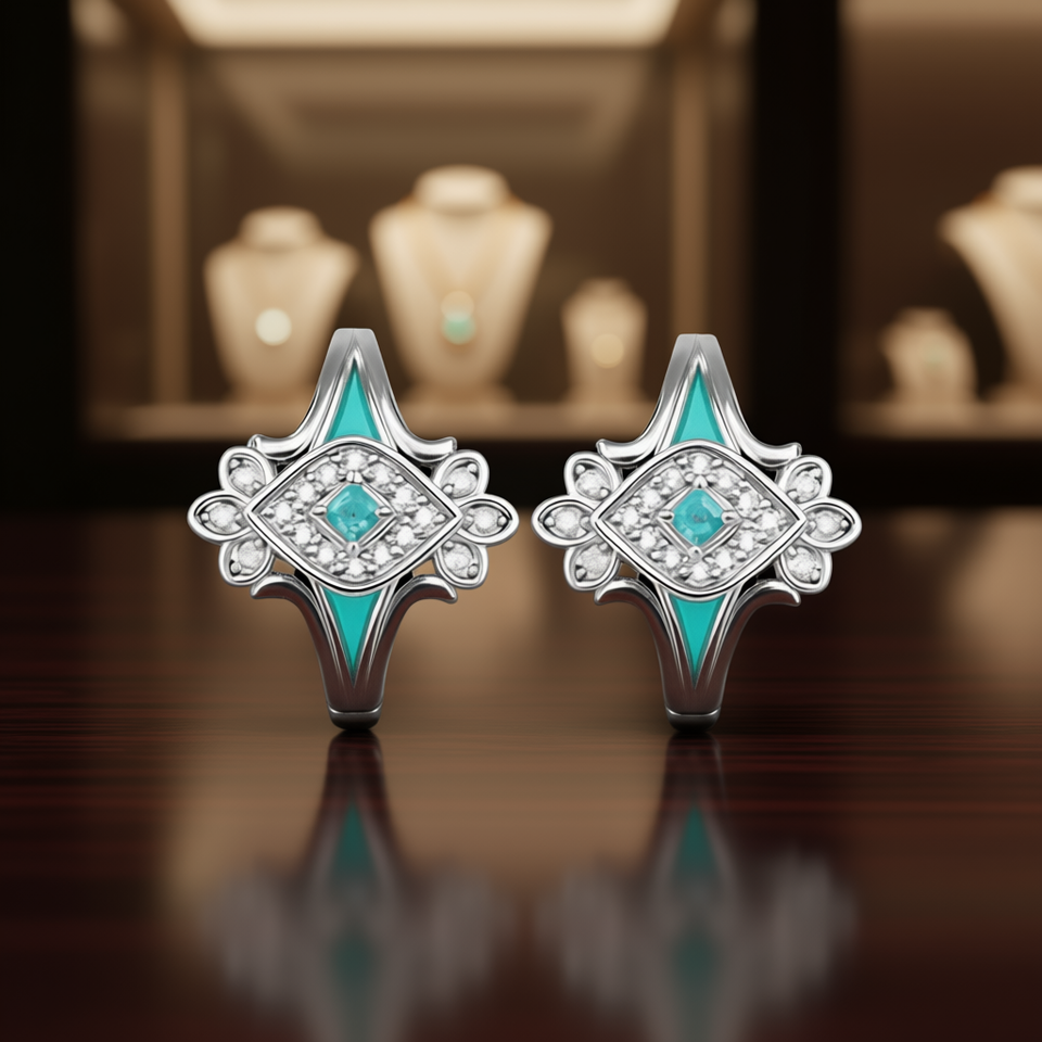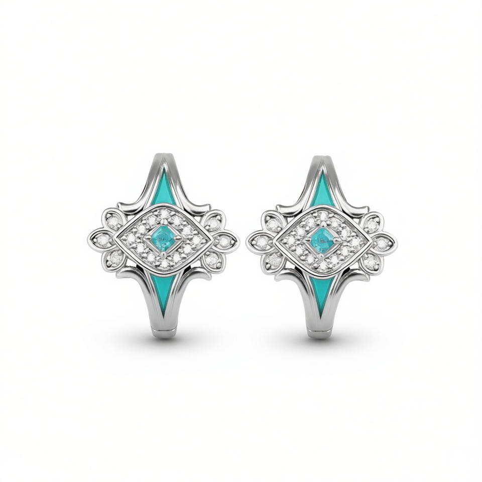 E4551 White Gold Diamond Earrings Princess Cut Natural Diamonds D Color Classic Style Women's Everyday Wear