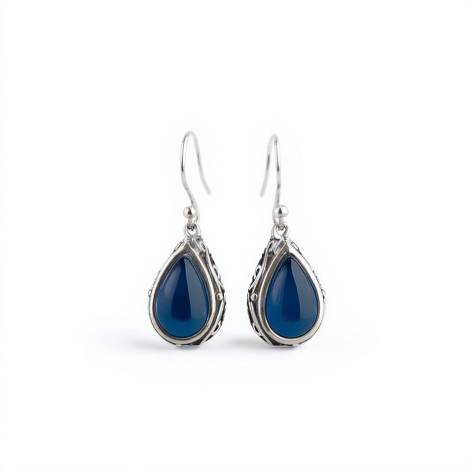 E4603 Blue Lapis Lazuli Teardrop Drop Earrings 925 Silver Bezel Setting Classic Women's Everyday Wear Jewelry