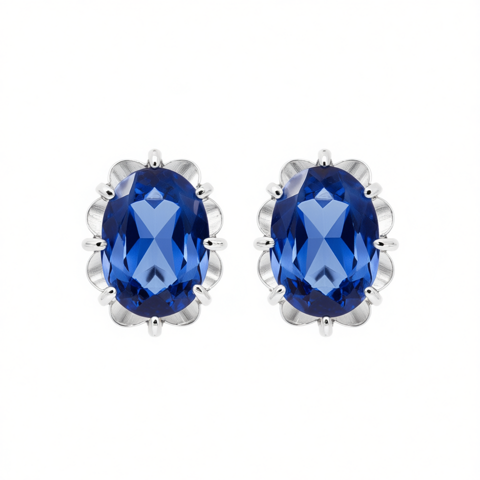 E4626 Sapphire Blue Stud Earrings White Gold Claw Setting Flower Shape Classic Women's Fine Jewelry