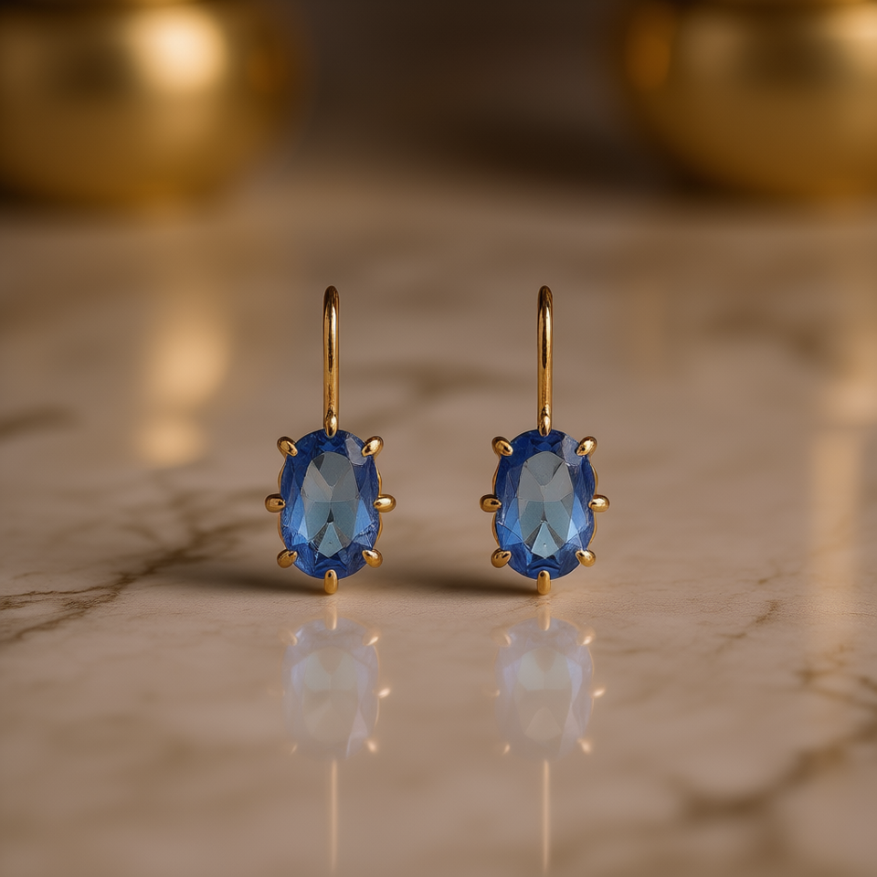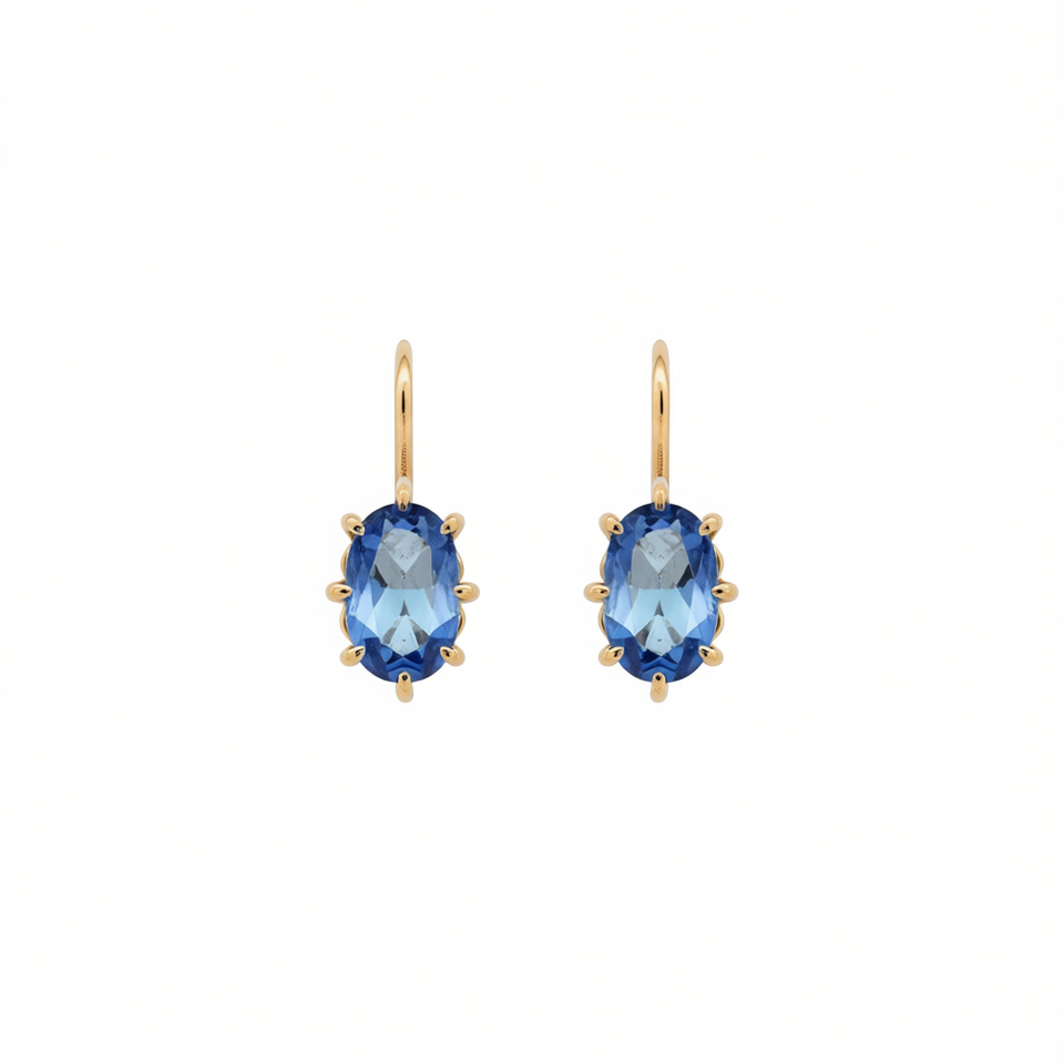 E4628 Rose Gold Oval Cut Topaz Drop Earrings Claw Setting Women's Classic Everyday Wear