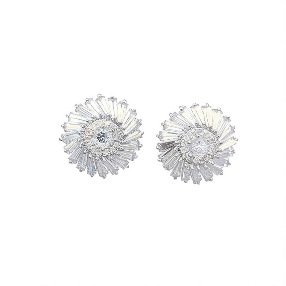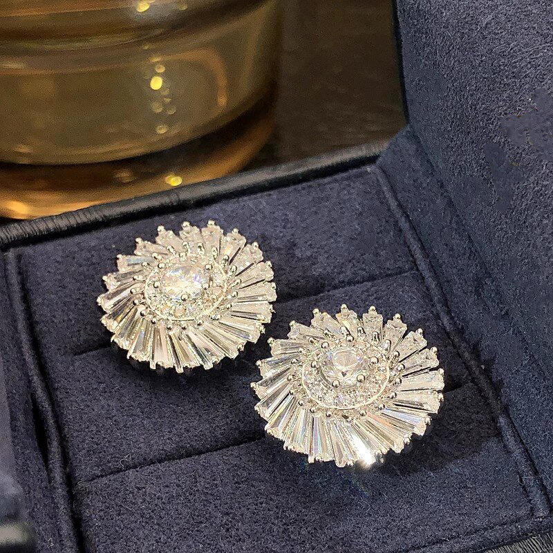 E4636 White Gold Flower Stud Earrings With Round Zircon Claw Setting For Women Wedding Romantic Fashion Jewelry