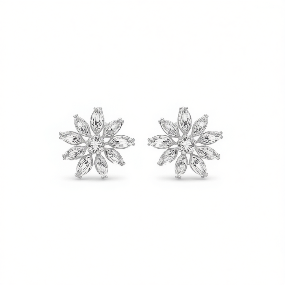 E4637 White Gold Flower Stud Earrings Marquise Cut Crystal Rhinestone Claw Setting Women's Classic Wedding Jewelry