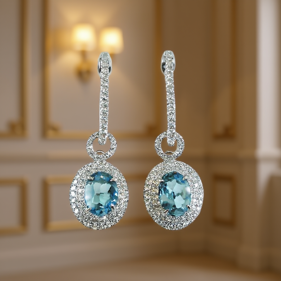 E4721 White Gold Drop Earrings With Topaz Stone Claw Setting Classic Women's Wedding Jewelry