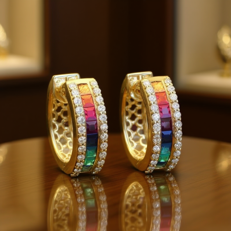 E4733 Golden Huggie Earrings Women's Fashion Party Jewelry Crystal Rhinestone Channel Setting Trendy Alloy Earrings