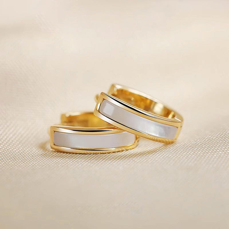 E4760 Golden Hoop Earrings 18K Solid Gold Classic Unisex Everyday Wear
