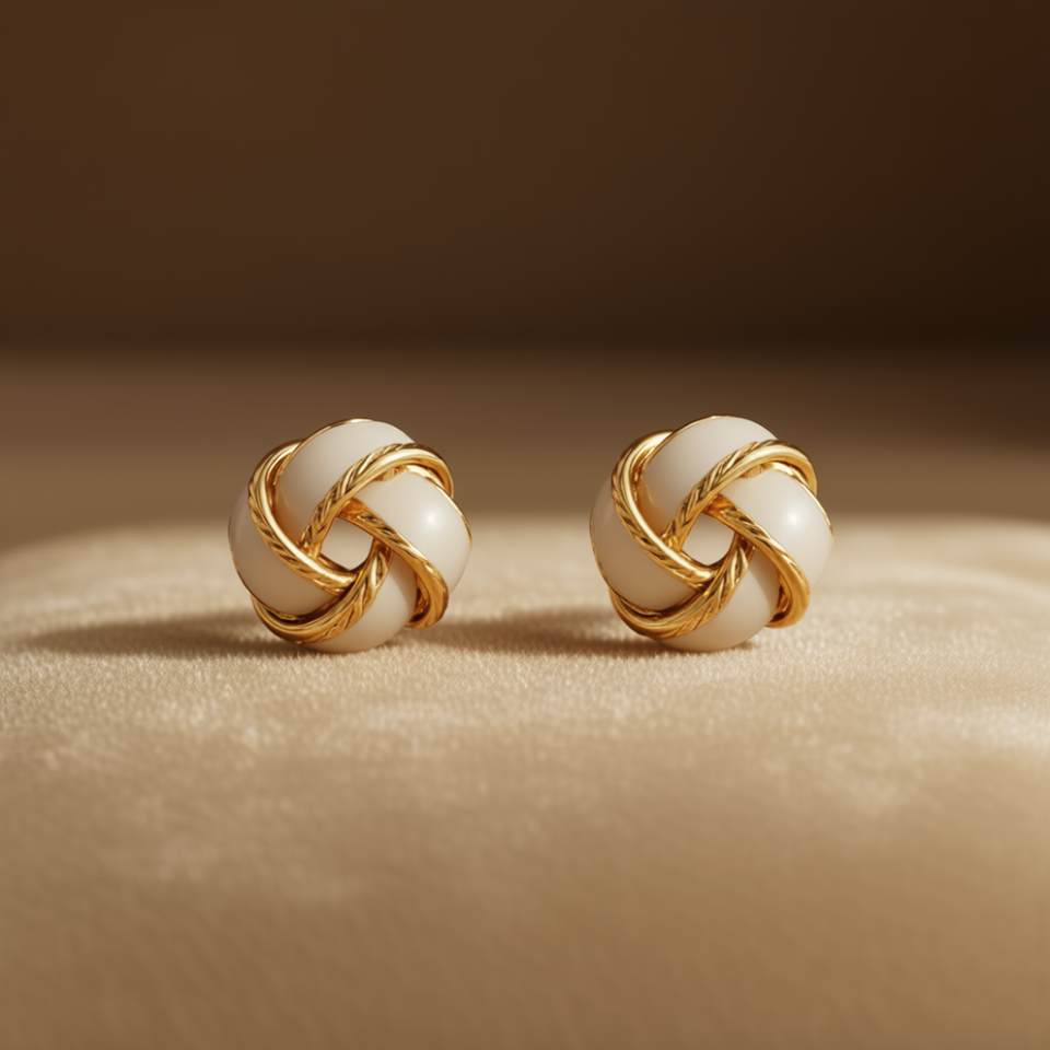 Orecchini a Perno E4770 Placcati in Oro con Design a Fiocco in Conchiglia, Gioielli Unisex Classici per Uso Quotidiano