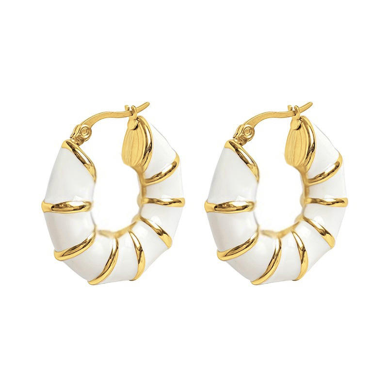 E4793 Gold Ceramic Hoop Earrings Women's Geometric Trendy Fashion Jewelry Zinc Alloy Plated