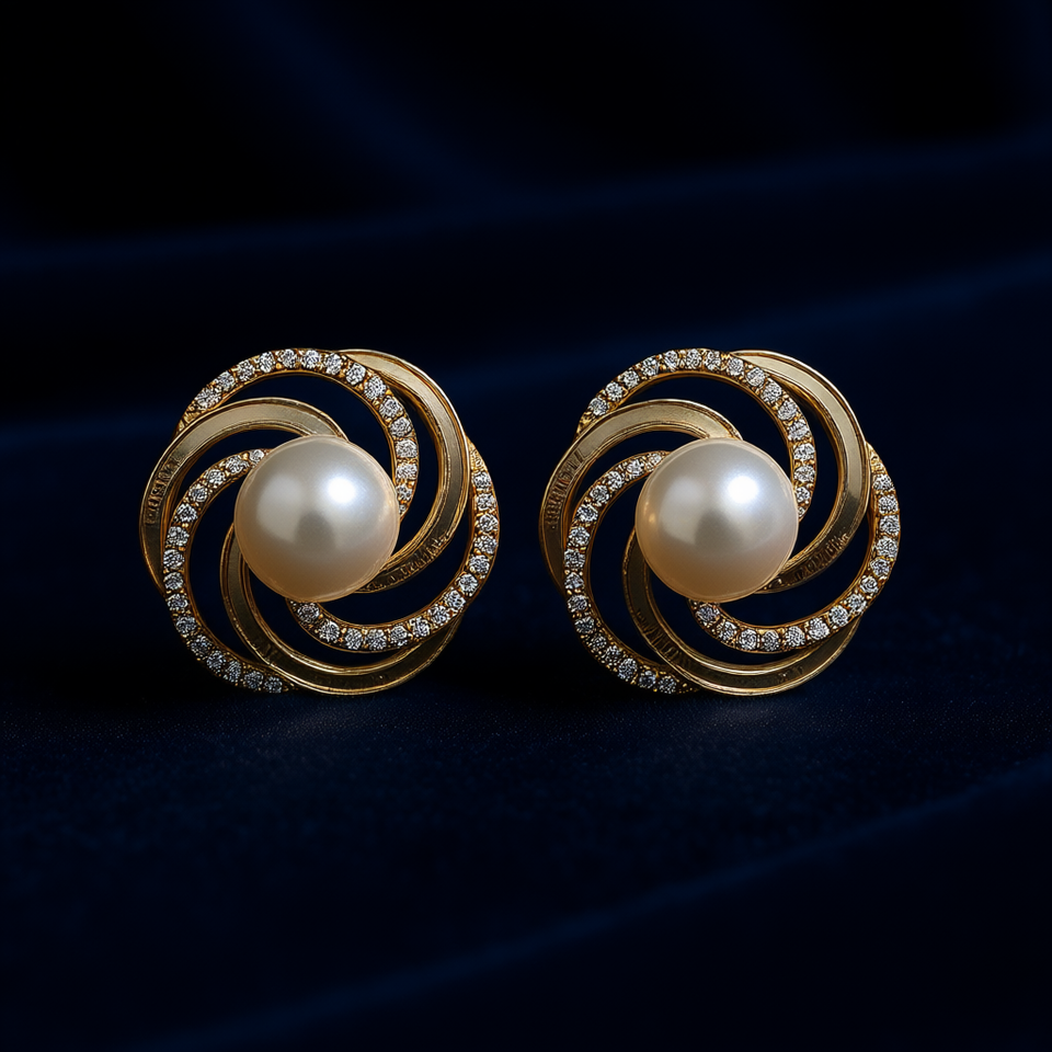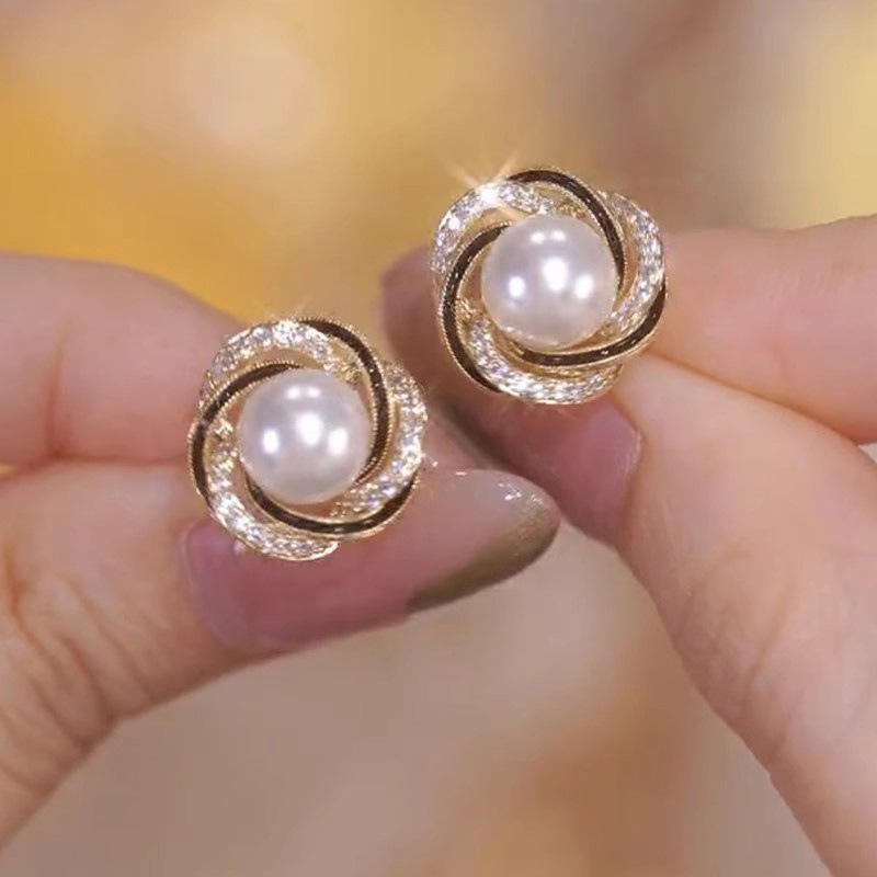 E4798 Gold Pearl Stud Earrings Flower Design 18K Gold Filled Women's Wedding Jewelry