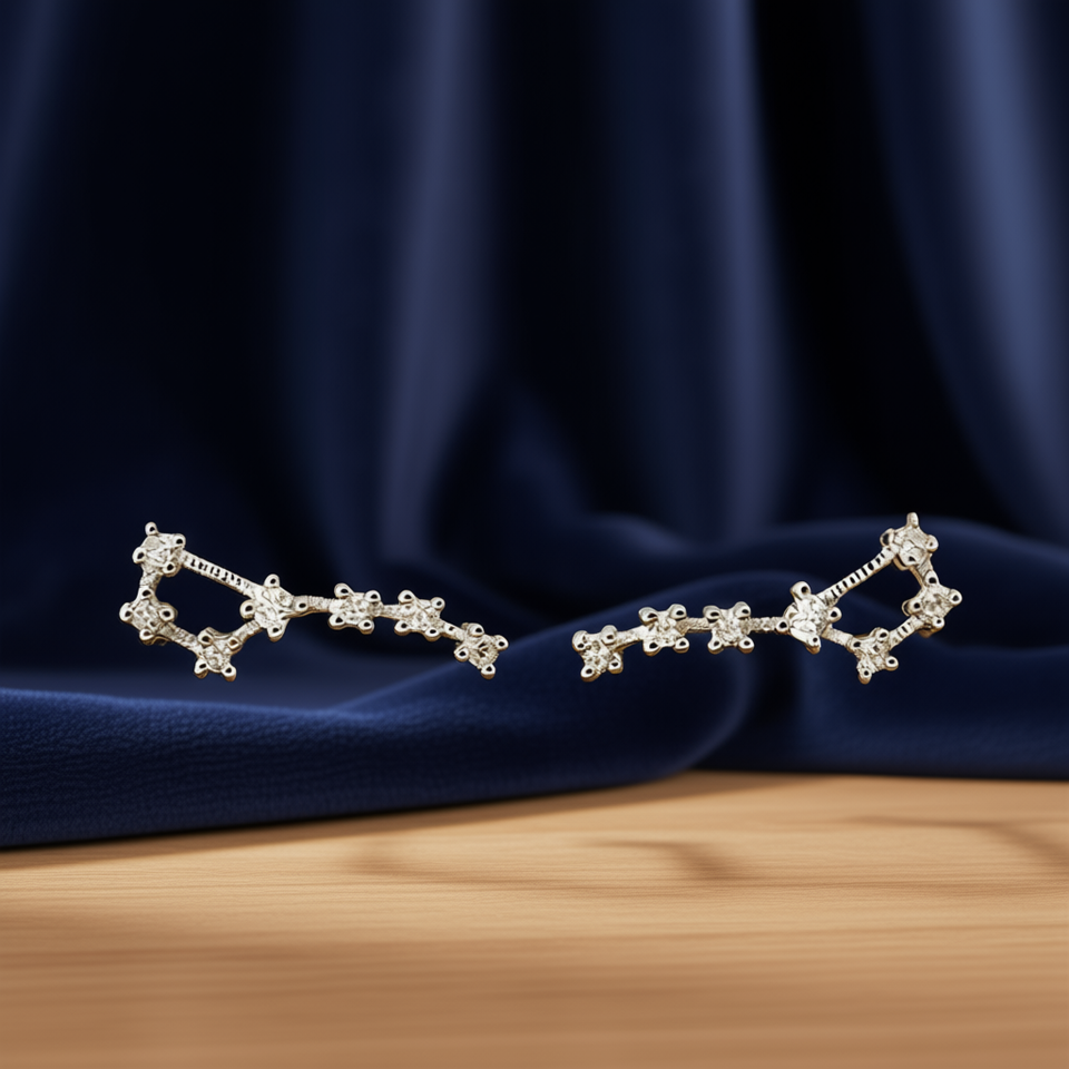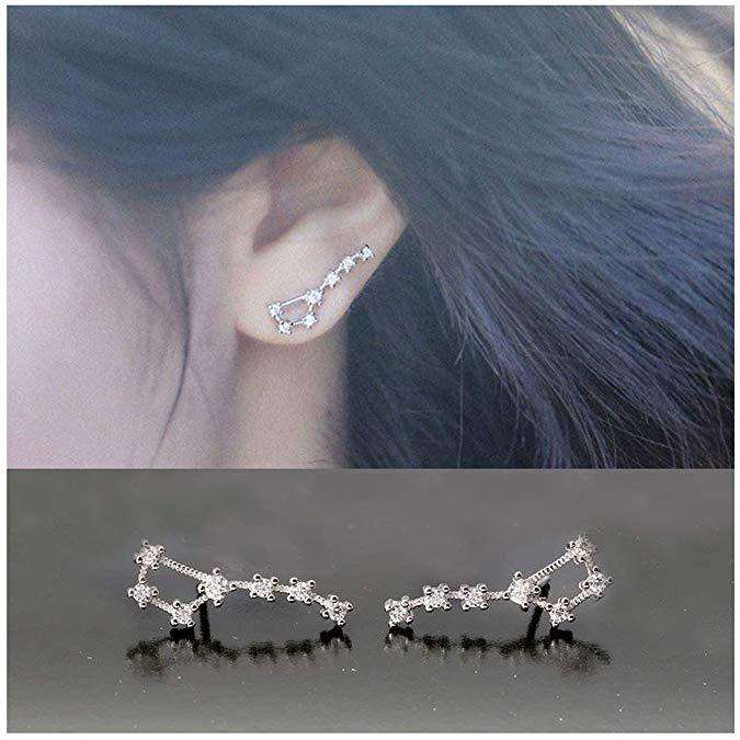 E480 Orecchini geometrici in oro bianco con montatura a punta con zirconi rotondi per donna, gioielli di moda in stile classico