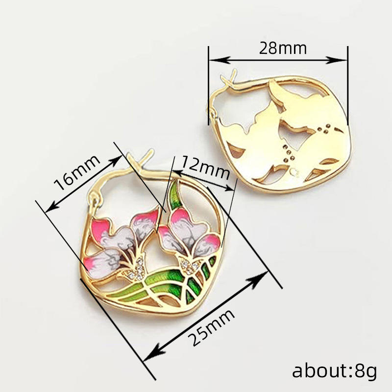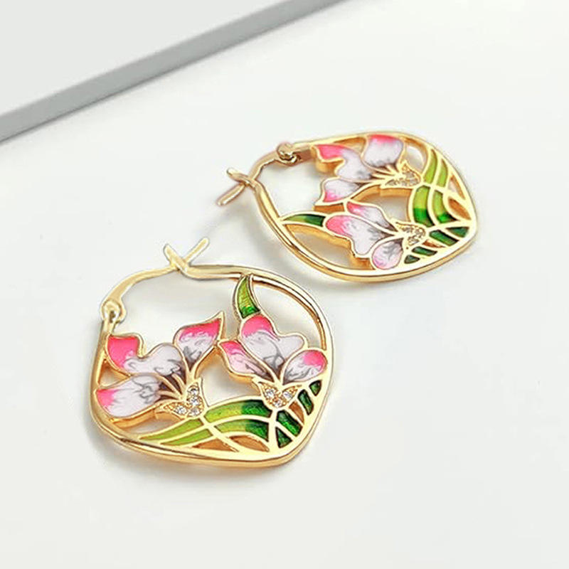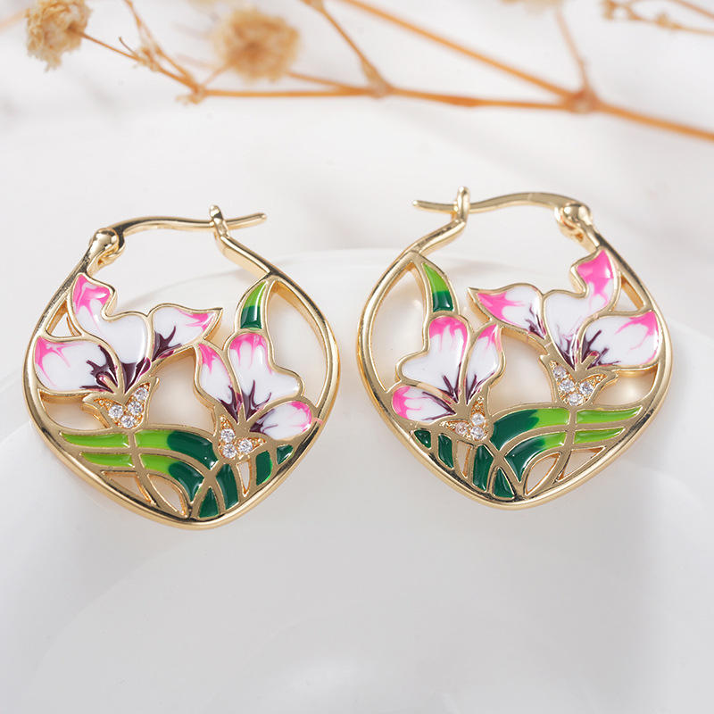 E4806 Gold Flower Hoop Earrings Women's Crystal Rhinestone Bezel Setting Romantic Everyday Wear Fine Jewelry
