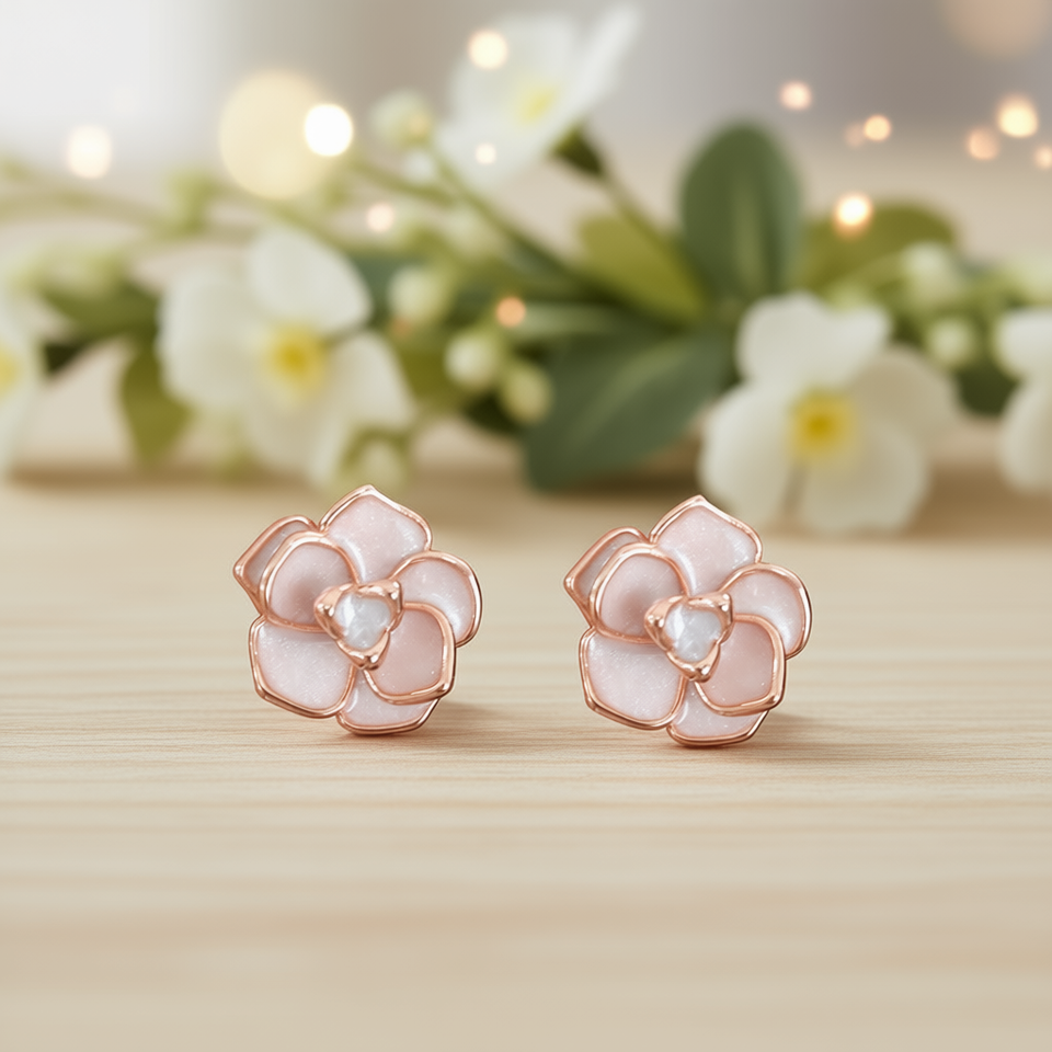 E4829 Orecchini a forma di fiore in oro rosa per donna, con intarsio in conchiglia, gioielli romantici in lega alla moda