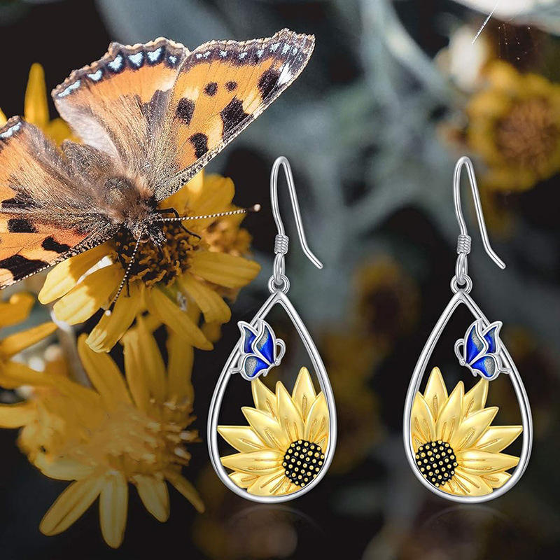 E4856 Orecchini Pendenti a Fiore Bicolore Placcati Argento in Lega di Zinco, Gioielli Moda Donna, Stile Regalo