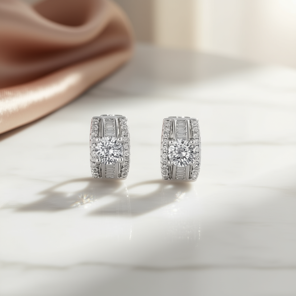 E4863 White Gold Diamond Earrings Round Brilliant Cut G Color Natural Diamonds Women's Classic Wedding Jewelry