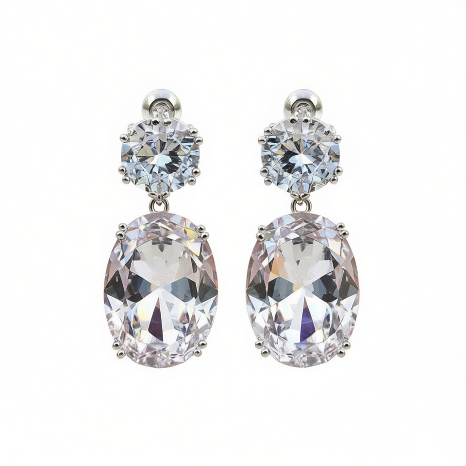 E491 Women's Crystal Drop Earrings Silver Claw Setting Water Drop Wedding Classic Style Rhinestone Jewelry