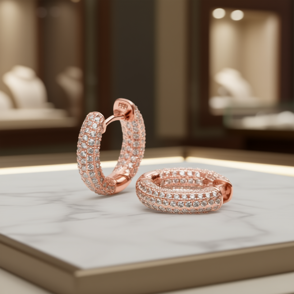 E573 Rose Gold Hoop Earrings Women's Crystal Rhinestone Trendy Party Jewelry Alloy Micro Insert Round Brilliant Cut