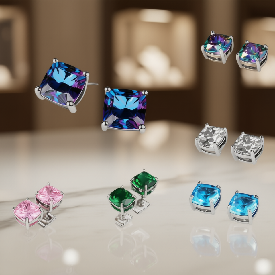 Orecchini a Perno E603 con Cristalli Colorati, Montatura Geometrica a Griffe, Gioielli Classici in Lega di Zinco per Uso Quotidiano Femminile