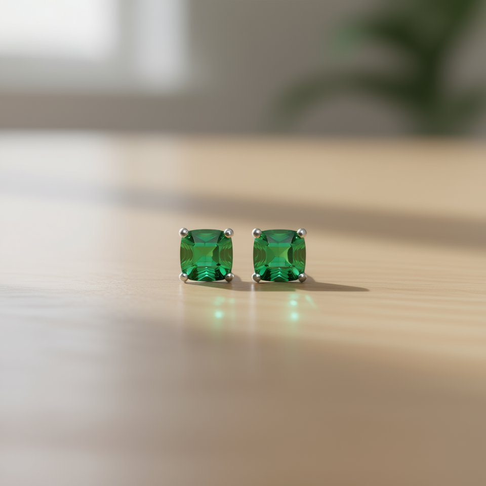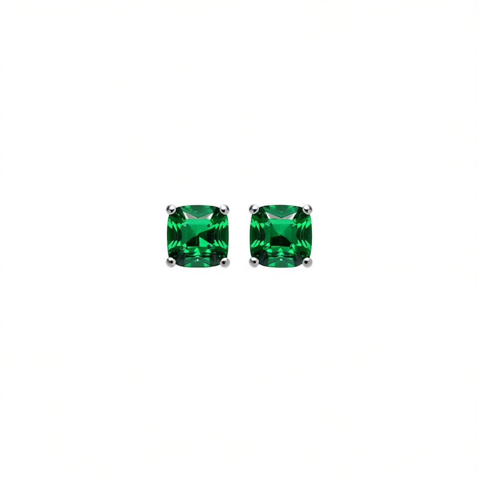 E606 Green Stud Earrings Cushion Cut Geometric Alloy Women's Fashion Jewelry Classic Design Claw Setting