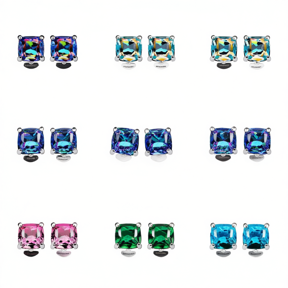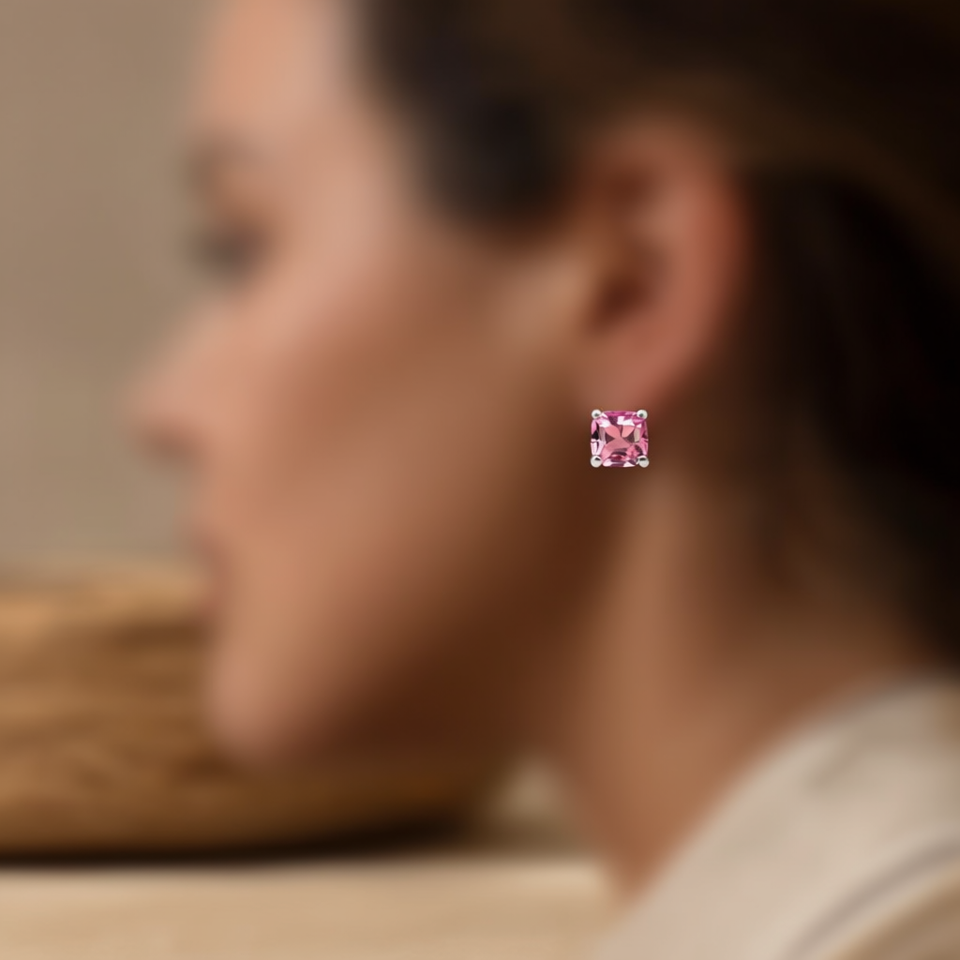 E607 Pink Stud Earrings Princess Cut Claw Setting Alloy Women's Fashion Jewelry Gift Trendy