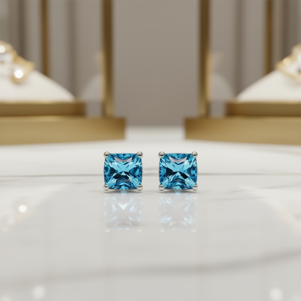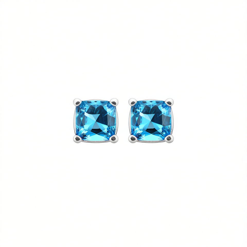 E607 Topaz Stud Earrings Geometric Claw Setting Women's Classic Crystal Jewelry