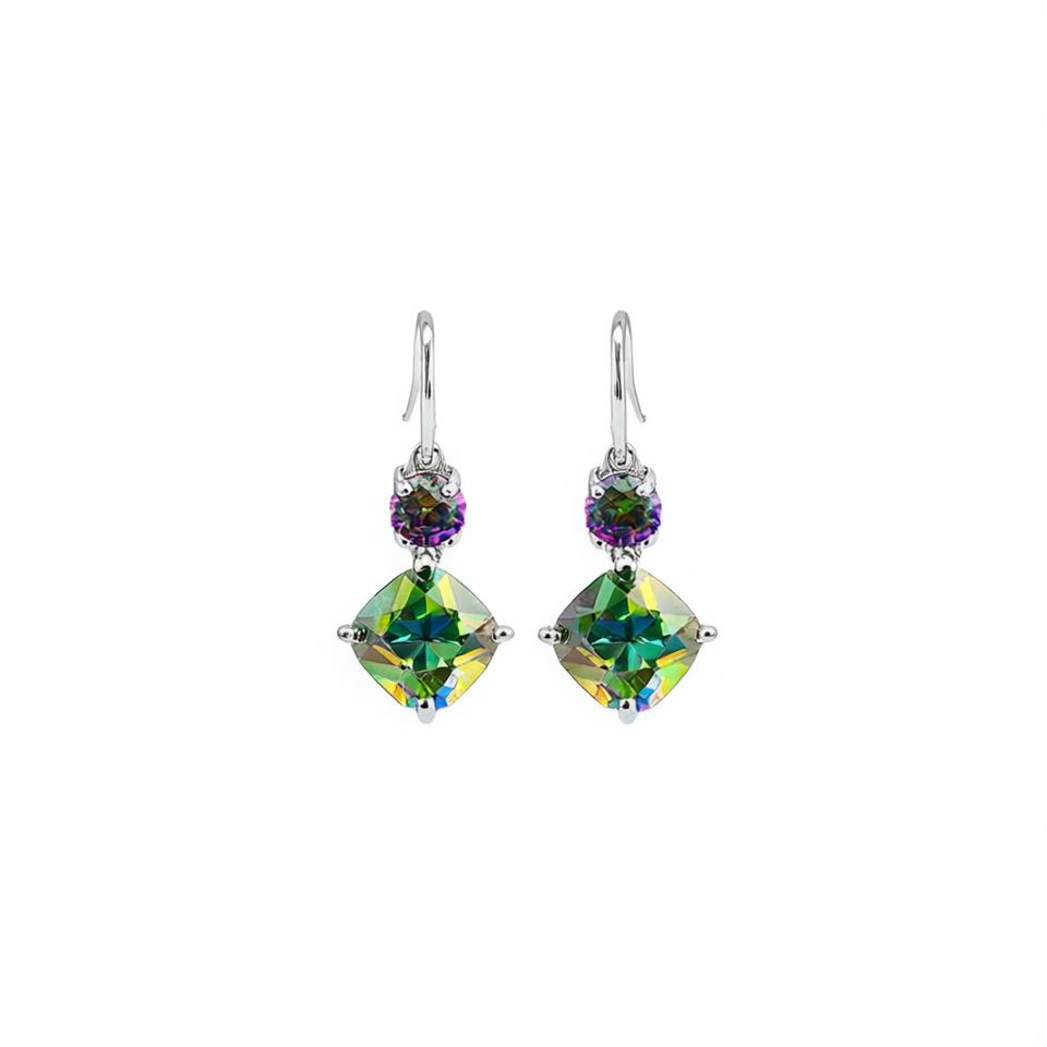 Orecchini Pendenti E614 in Quarzo Arcobaleno Naturale, Argento 925, Cristallo Geometrico con Montatura a Griffe, Trendy per Uso Quotidiano Femminile