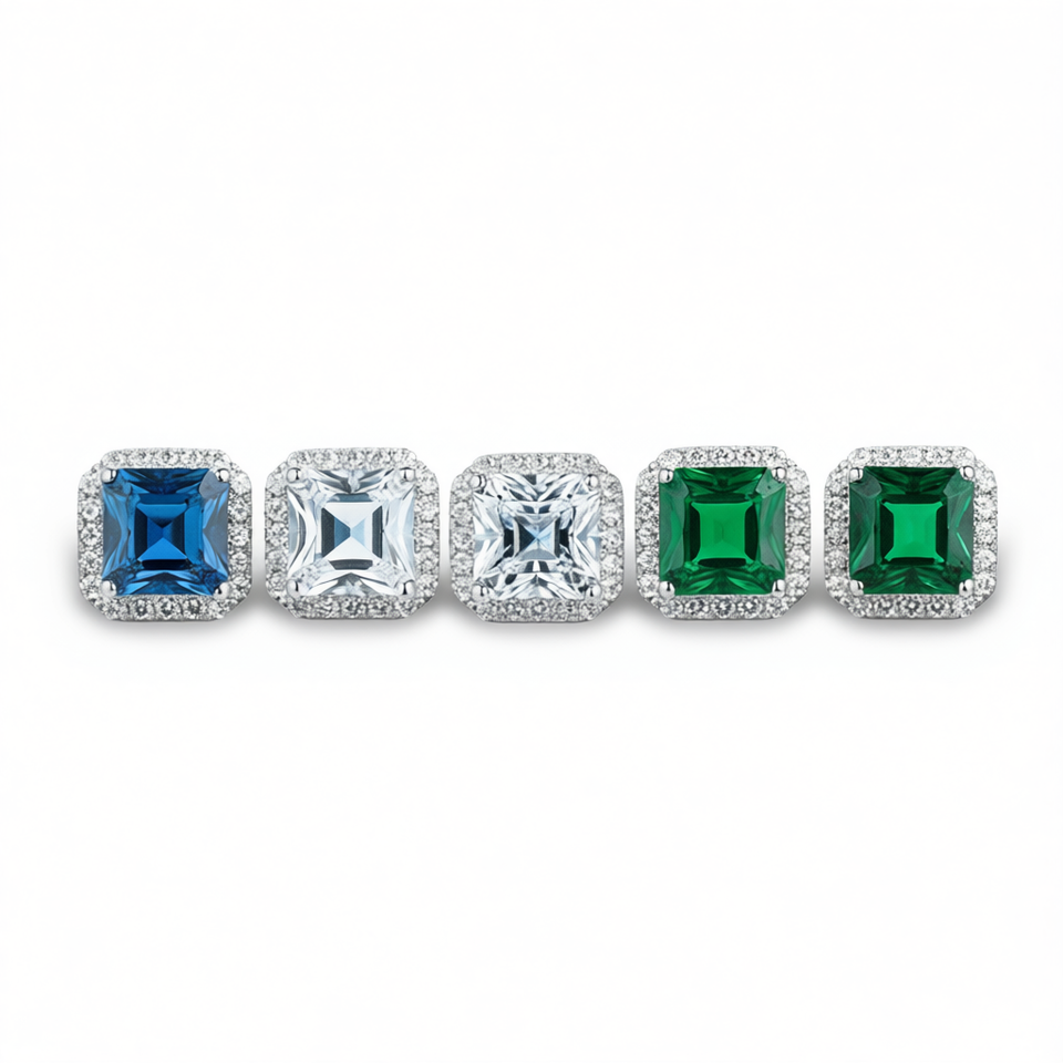 E671 Women's Square Gemstone Ring Natural Sapphire Pave Setting Stainless Steel Classic Engagement Ring September Birthstone