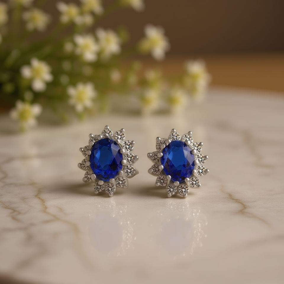 E695 Floral Stud Earrings Pink Oval Cut Alloy Women's Party Jewelry