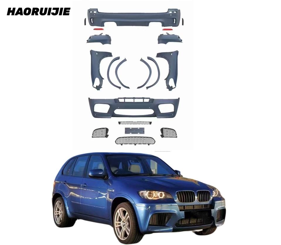 E70 body kit per 11-13 BMW E70 X5 aggiornamento a X5M Bodykit paraurti anteriore paraurti posteriore parafanghi rotondi per sopracciglia