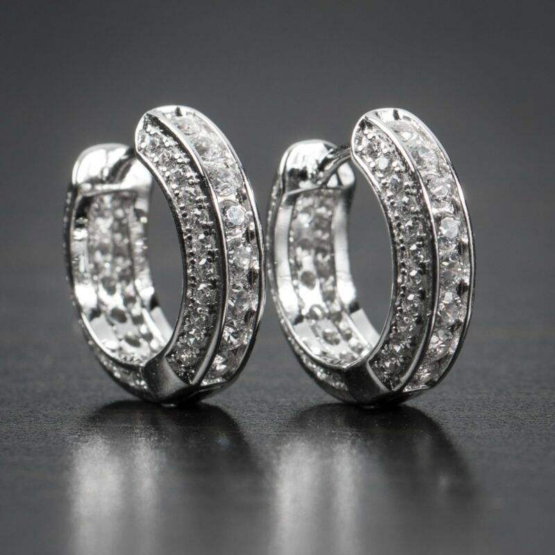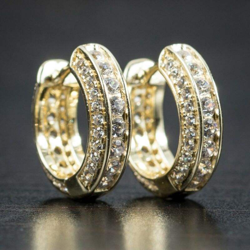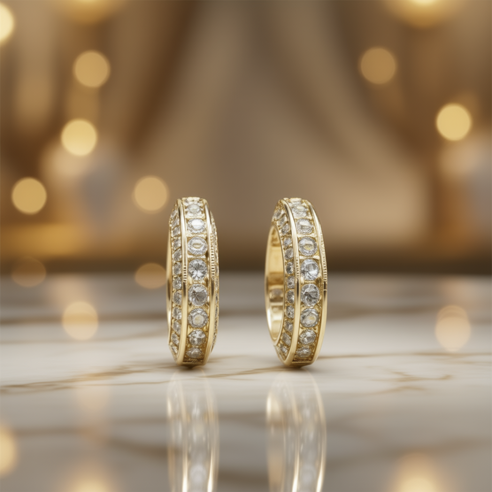 Orecchini a Cerchio E712 in Oro con Cristalli e Strass, Gioielli Unisex di Lusso per Uso Quotidiano