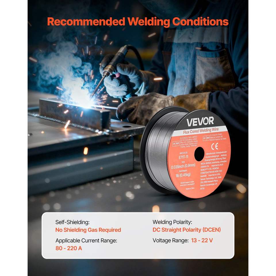 Filo per saldatura MIG a nucleo flessibile E71T-11 da 0,035 pollici, 1 libbra, senza gas, in acciaio dolce, a bassa schizziatura, per saldatura ad arco in tutte le posizioni