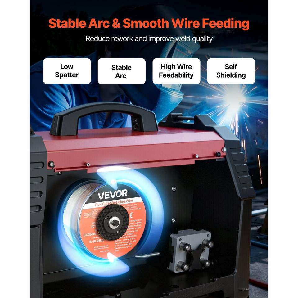 Filo per saldatura MIG a nucleo flessibile E71T-11 da 0,035 pollici, 1 libbra, senza gas, in acciaio dolce, a bassa schizziatura, per saldatura ad arco in tutte le posizioni