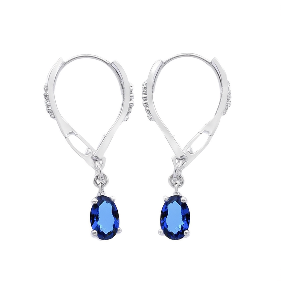 E720 Oval Sapphire Drop Earrings 925 Silver Claw Setting Classic Women's Everyday Wear