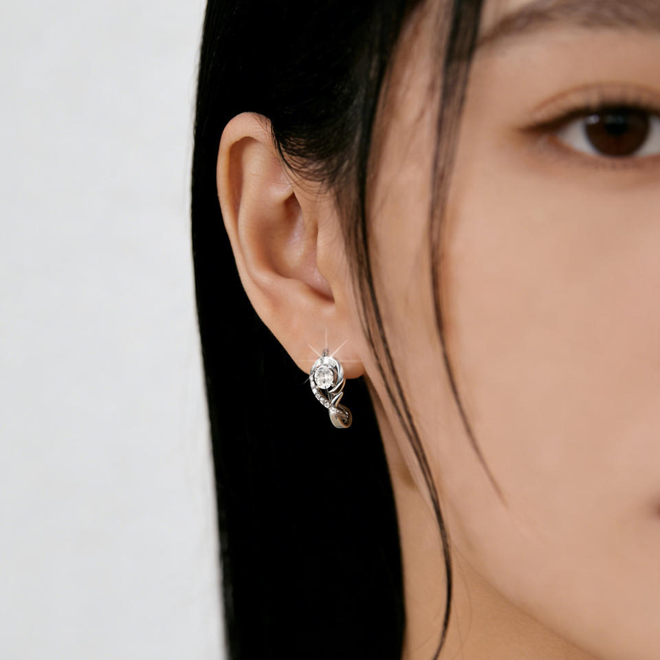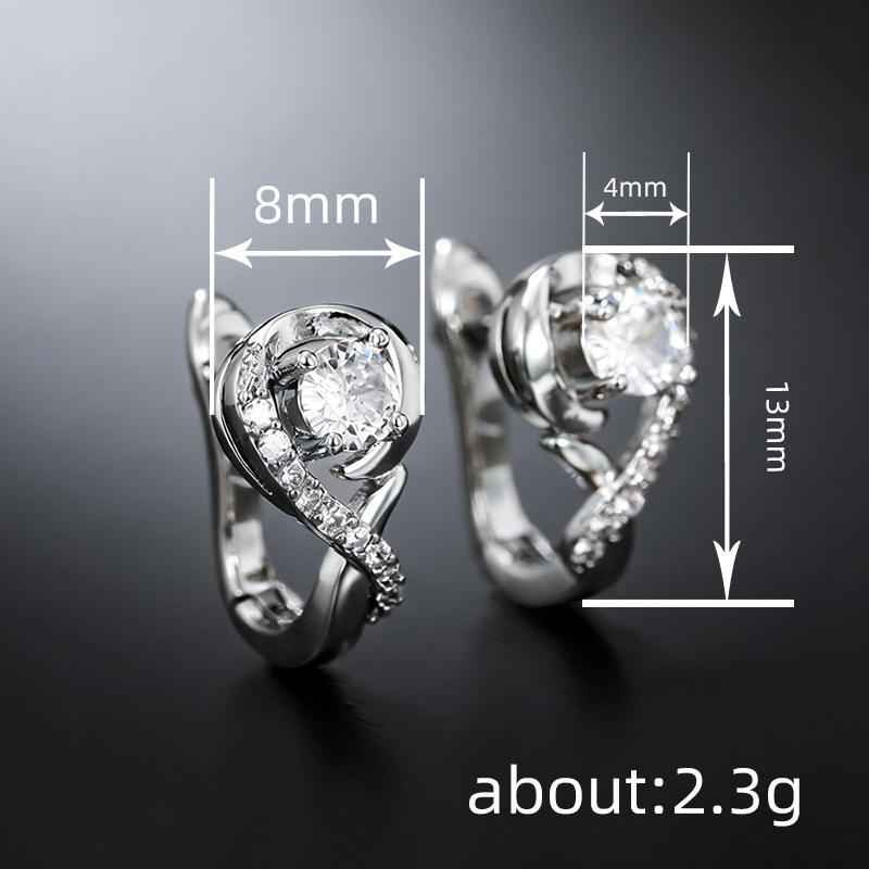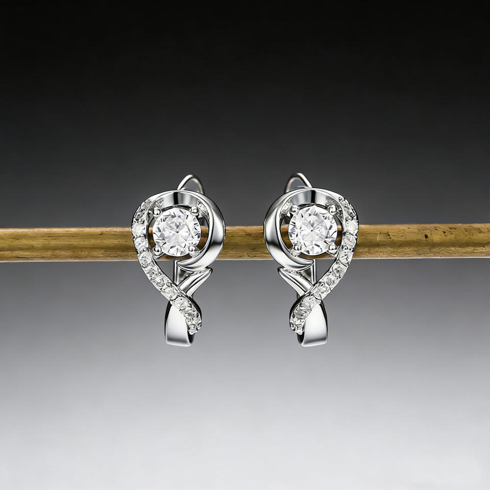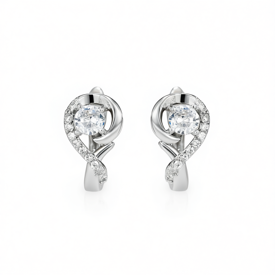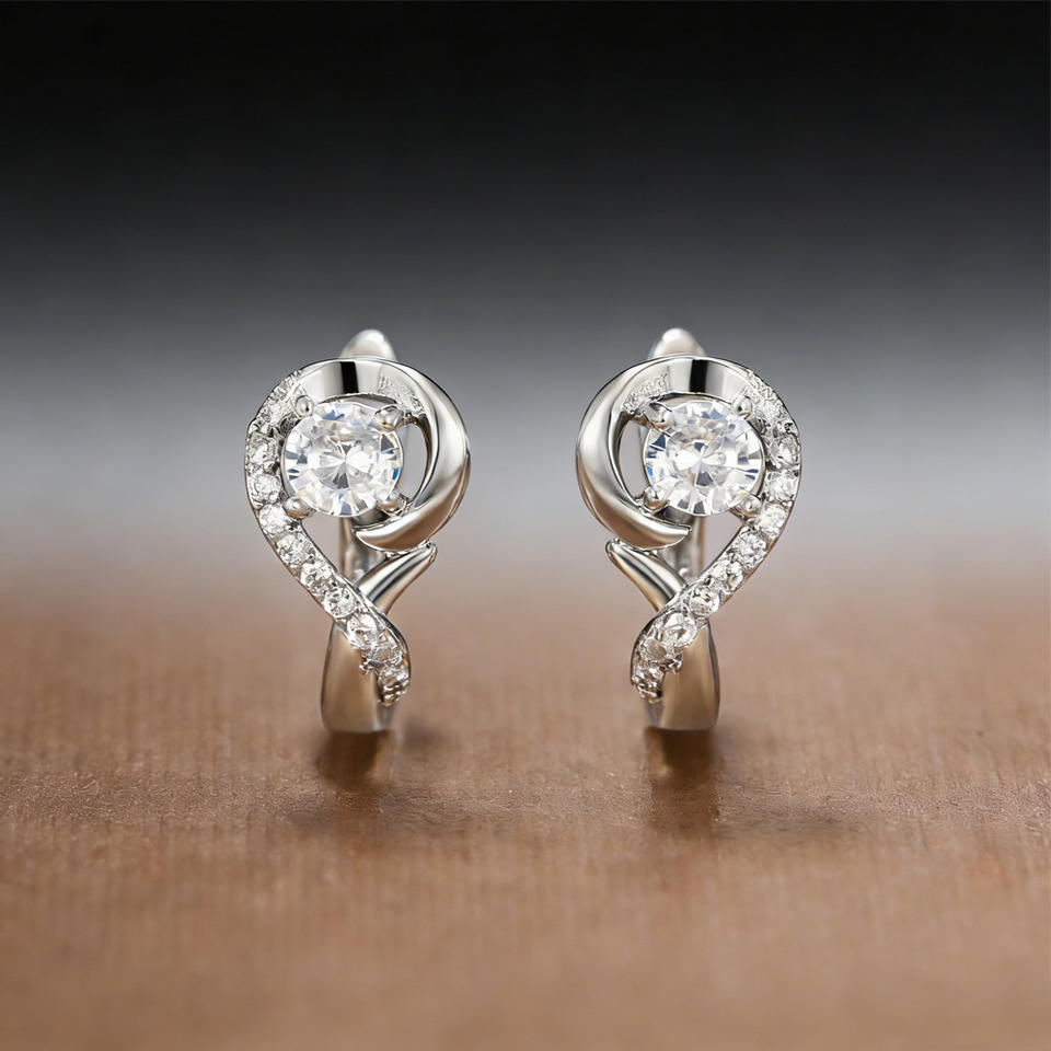 E728 White Gold Diamond Stud Earrings Round Brilliant Cut Flower Design Claw Setting Women's Wedding Classic Style