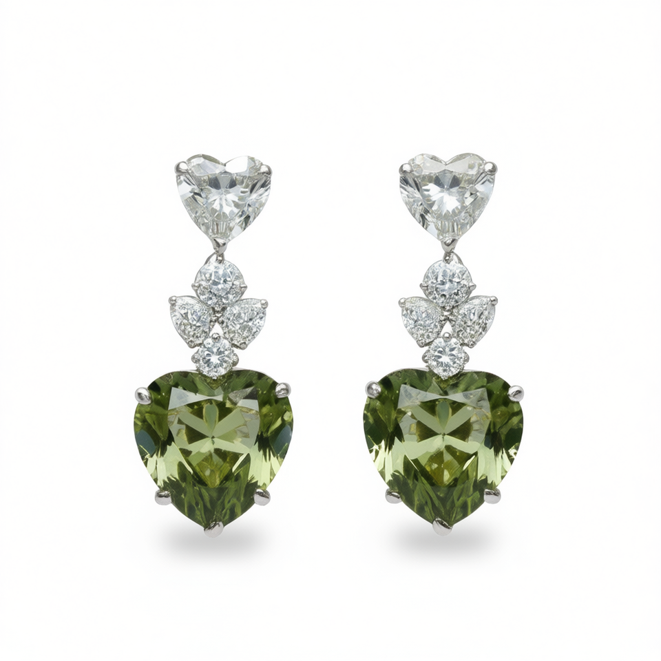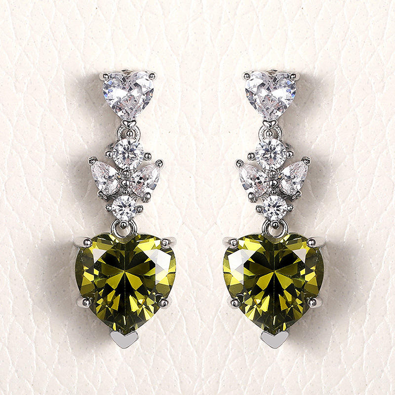 E792 Women's Olive Green Heart Cut Diamond Earrings Natural D Color Classic Wedding Style