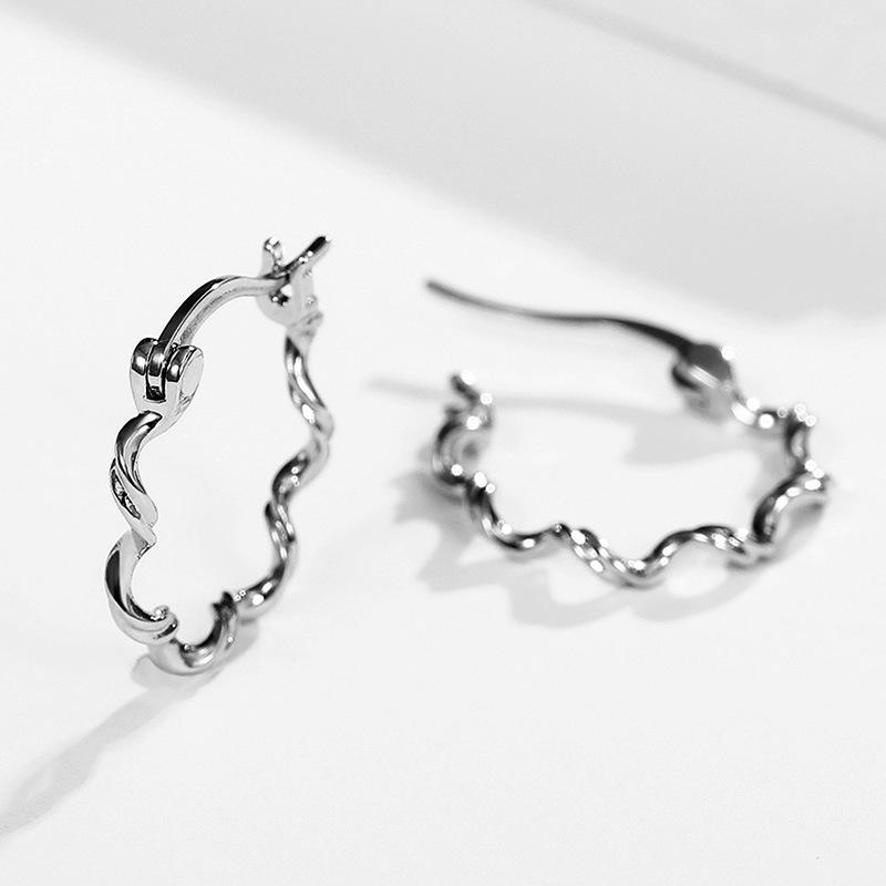 E920 White Gold Hoop Earrings Minimalist Unisex Fine Jewelry