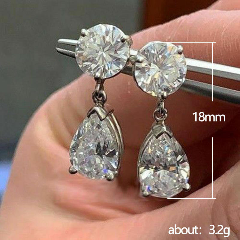 E981 White Gold Diamond Earrings Round Brilliant Cut D Color Natural Women's Classic Wedding Jewelry